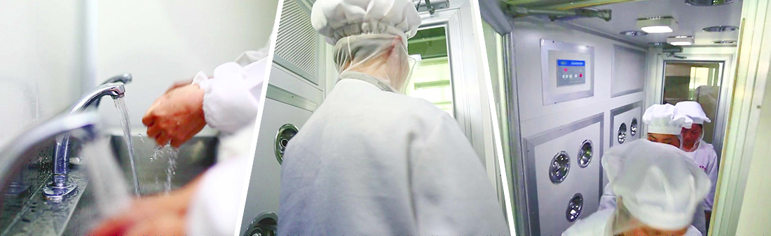 一丝不苟的消毒程序:换鞋间、衣帽间、洗涤间、风淋间等一丝不苟的消毒程序